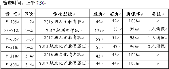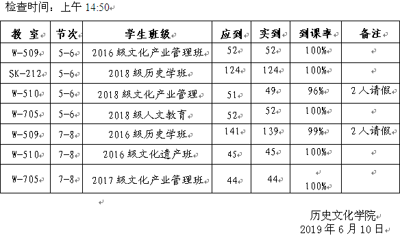 为进一步规范教学管理,维护正常教学秩序,确保教学工作顺利开展,2019年6月10日,beat365官网教学自查小组对上课班级师生到课情况进行了检查,现通报如下: