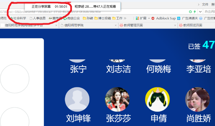 任命学委负责群的日常管理,在群里下达相应的学习任务、传递学习资料,使用QQ群屏幕分享功能,进行上课直播,在每次直播前,先进行系统的调试工作,第一次调试用时约30分钟,之后调试几乎1分钟内解决,十分顺畅。如下: