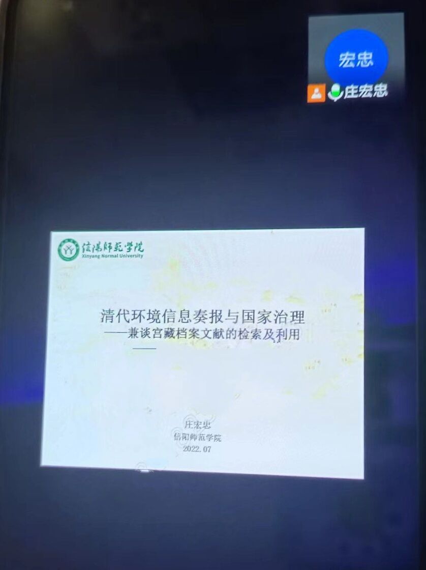 7月8日晚,庄宏忠博士于腾讯会议平台上做了题为“清代环境信息奏报与国家治理——兼谈宫藏档案文献的检索及利用”的线上人文视野讲座,全程历时两个多小时,beat365官网2020级本科生在线听讲。