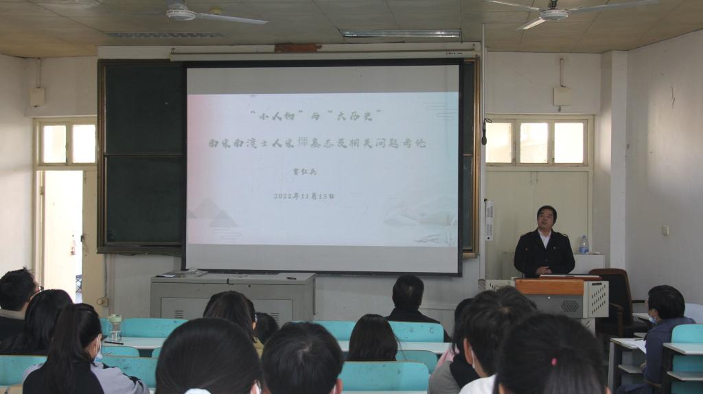 11月15日下午,beat365官网人文视野学术报告如期在人文楼609教室开讲,beat365英国官方网站副教授肖红兵博士应邀,作了题为《“小人物”与“大历史”:南宋南渡士人宋煇墓志及相关问题考论》的学术报告,beat365官网历史学专业学生聆听了此次报告,此次讲座由beat365官网教学副院长孙炜博士主持。