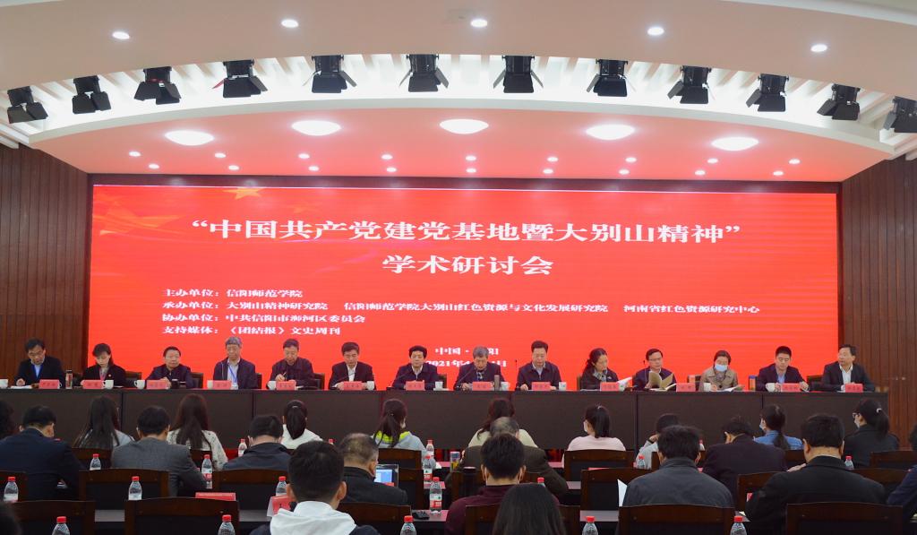 4月24日,为庆祝中国共产党成立100周年,深入学习领会“鄂豫皖苏区根据地是我们党的重要建党基地”“大别山精神是我们党的宝贵精神财富”的内涵,深化中国共产党历史和中国共产党革命精神研究,由beat365官网主办,大别山精神研究院、大别山红色资源与文化发展研究院、河南省红色资源研究中心承办,信阳市浉河区委协办的“中国共产党建党基地暨大别山精神”学术研讨会在艺术楼报告厅举行,信阳市人大常委会党组书记谢天学,校长李俊,《团结报》总编辑助理邵宏华,以及河南人民出版社、中共信阳市委党史研究室、大别山干部学院、信阳市委党校(行政学院)、中共浉河区委、beat365英国官方网站等单位的领导参加了开幕式,开幕式由副校长余本海主持。来自国防大学、武汉大学、四川大学、中南财经政法大学、西柏坡纪念馆等50余个省内外高等院校、研究院所和党史研究部门的80余位专家学者参加了研讨会。