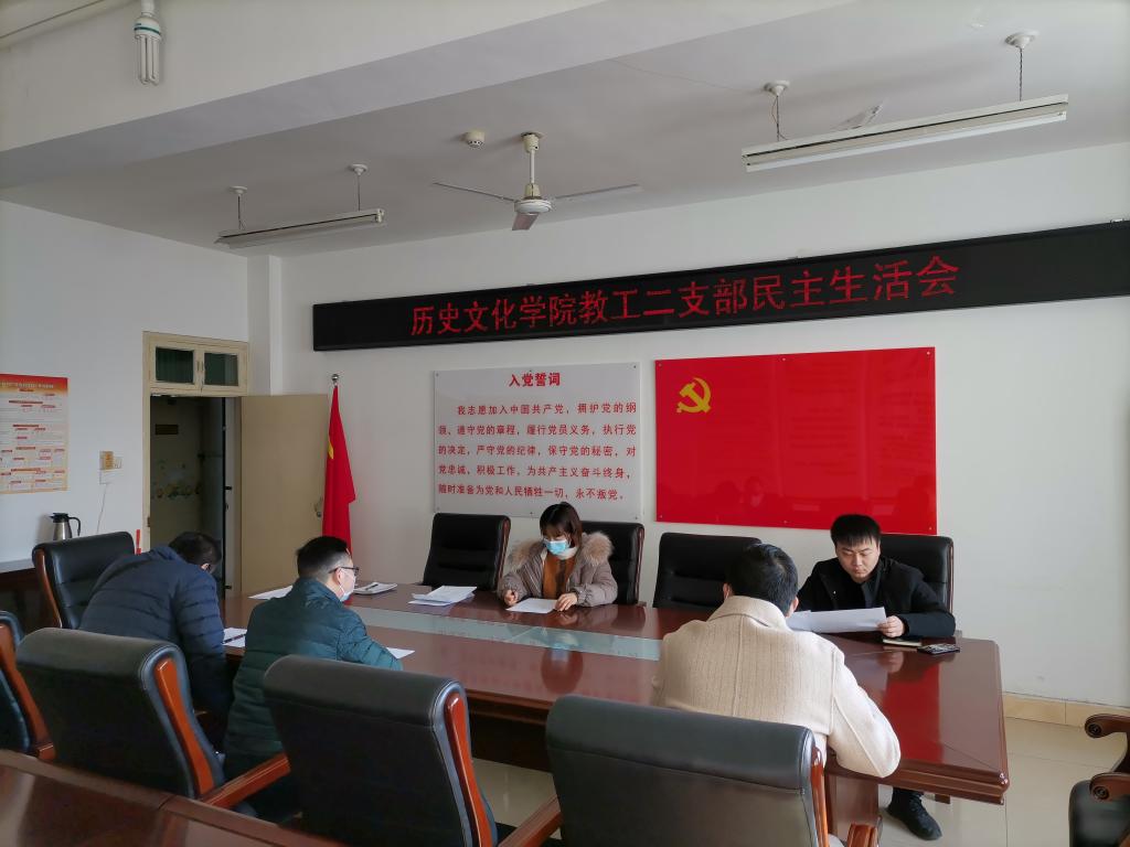 为深入学习贯彻习近平新时代中国特色社会主义思想,领会党的十九届五中全会精神,为进一步巩固“不忘初心、牢记使命”及“以案促改”主题教育成果,不断提升基层党支部政治功能和组织力,2021年1月18日-3月5日,历史文化学院各党支部相继召开组织生活会,并开展党员民主评议活动。会议由各支部书记主持。