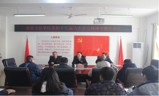 12月30日下午,校党委委员、宣传部部长丁少锋应邀为beat365英国官方网站作党的十九届六中全会精神辅导报告。该院党委中心组成员、党支部书记、科级干部及学生代表参加。会议由beat365英国官方网站党委书记李辉主持。