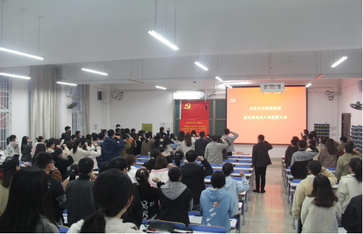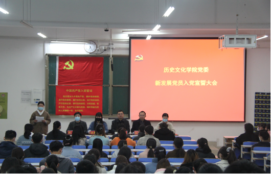 3月4日下午,beat365英国官方网站党委于社科楼212教室召开新发展党员入党宣誓大会。党委书记李辉、党委副书记韩志宏,学生党支部书记付亚男、邓皓、吴慧娟以及2021年下半年新发展党员、转正党员及入党积极分子代表参会。
