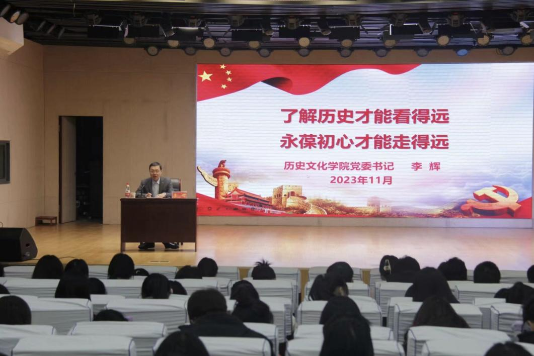 近期召开的全国宣传思想文化工作会议上,党中央正式提出并系统阐述了习近平文化思想。习近平文化思想的提出,是党的理论建设的又一重大创新。为进一步将学习引向深入, 11月7日在理科楼报告厅,学院党委书记李辉为两百余名本硕新生作了题为《了解历史才能看得远 永葆初心才能走得远》专题讲座。