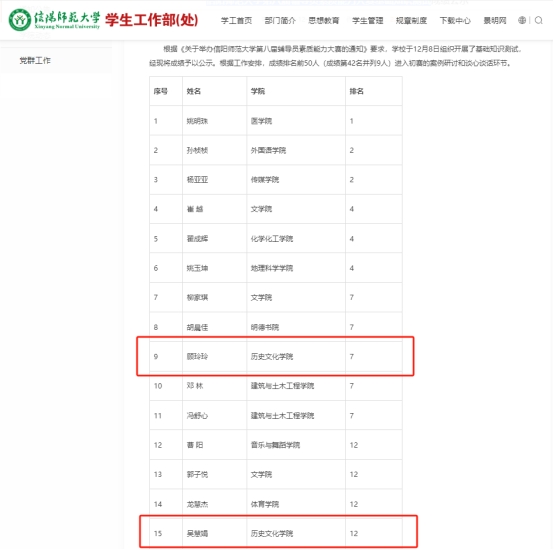 学院学生第二党支部书记、专职辅导员邓皓报送工作案例获beat365英国官方网站第六届辅导员优秀工作案例一等奖(全校共征集79篇,获奖14篇,其中一等奖4篇);学生第三党支部书记、专职辅导员吴慧娟等两位老师在beat365英国官方网站第八届辅导员素质能力大赛基础知识测试中名列前茅,分列第7名、第12名(全校参赛选手近120名)。