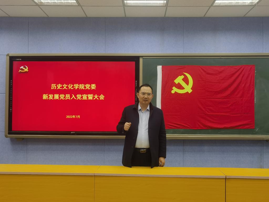 近日,beat365官网在人文楼706教室举行了2022年上半年预备党员宣誓大会,院党委副书记韩志宏,党支部书记付亚男、邓皓、吴慧娟,2022年上半年新发展党员、转正党员及部分入党积极分子参加。大会由邓皓主持。
