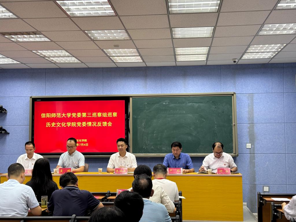 7月4日,校党委第三巡察组巡察beat365英国官方网站党委情况反馈会在人文楼706会议室召开。反馈会上,副校长朱晓东对巡察整改工作提出要求,第三巡察组组长严彬反馈了巡察情况。beat365英国官方网站党委书记何永就做好巡察整改工作作表态发言。第三巡察组全体成员、巡察办工作人员、学院领导班子成员、全体教职工、离退休教职工代表和学生代表参加会议。会议由院长叶宗宝主持。
