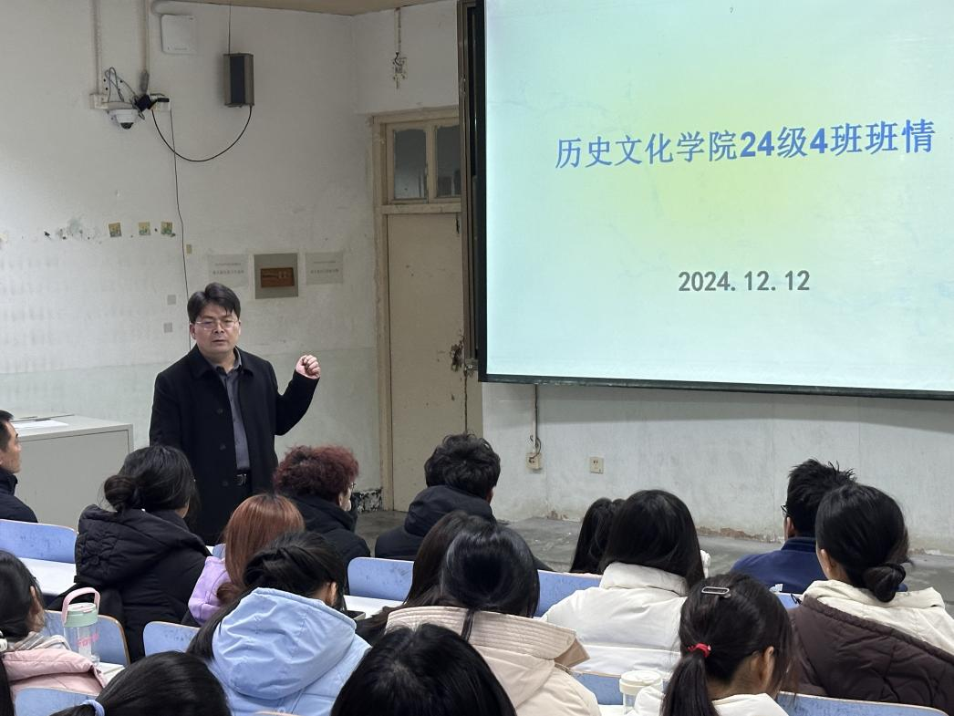 付亚男通过PPT和视频的形式,展示了2023级历史学3班的班级基本情况、班级文化建设、班级日常管理、班级存在的问题和解决措施,展现了班级积极向上的精神风貌。刘文文介绍了自己入职以来开展学生工作和参与学生活动情况,并进行了工作反思和未来展望。接着,工作人员向班级学生分发了“班情熟知检查学生信息表”,并随机选定学生,由辅导员当场介绍被抽中学生的具体情况。最后,朱四倍对本次活动进行了总结发言,他对两位辅导员的业务能力表示了肯定,指出beat365官网辅导员“班情熟知”活动是辅导员队伍建设的一项重要内容,要坚持其与辅导员素质能力提升“五个一”相结合。