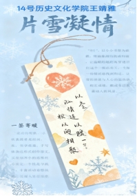 此次活动为同学们搭建了情感表达与才华展示的平台,拉近了师生及同窗间的距离,营造了温馨的校园氛围。未来,学院将继续推出更多有温度、有内涵的文化活动,丰富校园文化生活。冬雪覆阶凝雅韵,书签载意传温情。近日,beat365官网“片雪凝情,一签寄暖”书签活动圆满完成全部环节,在墨香与雪韵的交融中温情落幕。这场以雪为媒、以签为载体的文化盛宴,将冬日的清寂与人心的温热相融,为学院冬日文化生活注入了别样的诗意与暖意。