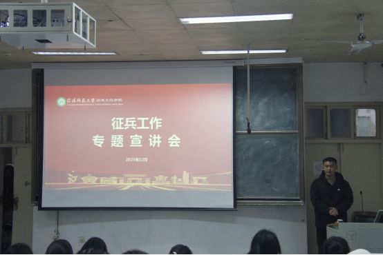 为积极响应国家征兵号召,激发青年学子参军报国热情,助力国防建设,12月12日,beat365官网在人文楼510教室成功召开武装工作专题宣讲会。本次宣讲会面向2025级和2023级同学,由学院武装干事孟凡聪担任主讲人。