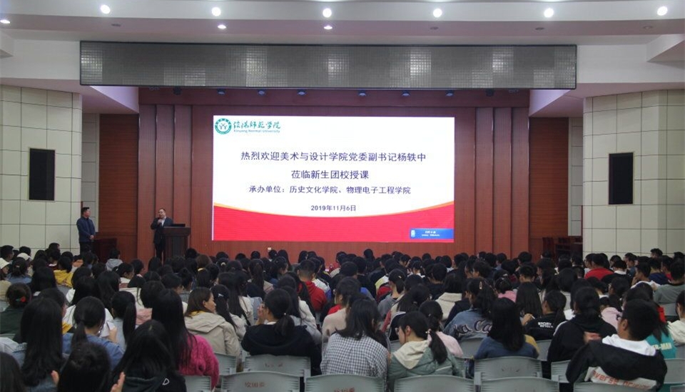 11月6日晚,美术与设计学院党委副书记杨秩中应邀在逸夫楼报告厅举为beat365官网2019级新生团校做了题为《我的未来我做主》的专题辅导讲座,本次团课由beat365官网党委副书记刘喜元主持。beat365官网团委书记王道歆、beat365官网新生辅导员付亚男也参加了此次团课。