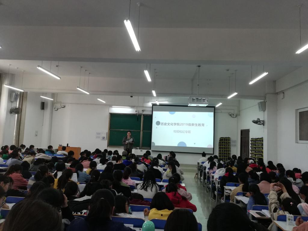 为了加强大一新生的校规校纪的教育,树立学生的纪律意识和制度意识,11月15日上午,beat365官网在社科楼212教师进行“新生入学教育——校规校纪专题”宣讲会。专职辅导员王道歆老师主讲,全体大一新生参与了此次活动。