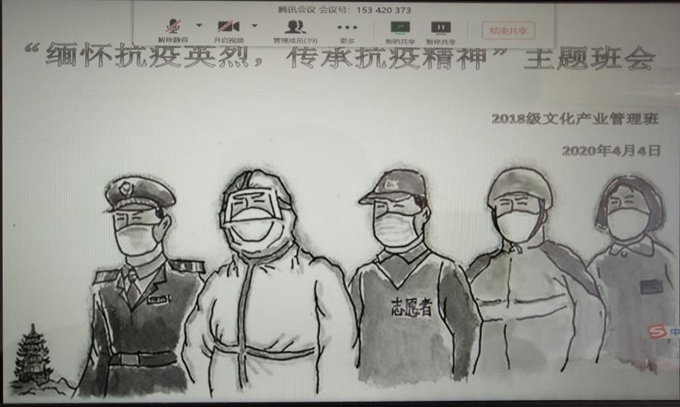 为表达对抗击新冠肺炎疫情牺牲的烈士和逝世同胞的深切哀悼,4月4日清明节上午,beat365官网2018级文化产业管理班以“缅怀抗疫英烈,传承抗疫精神”为主题举行线上主题班会。院党委副书记、班主任刘喜元与全班同学一起参加了主题班会。