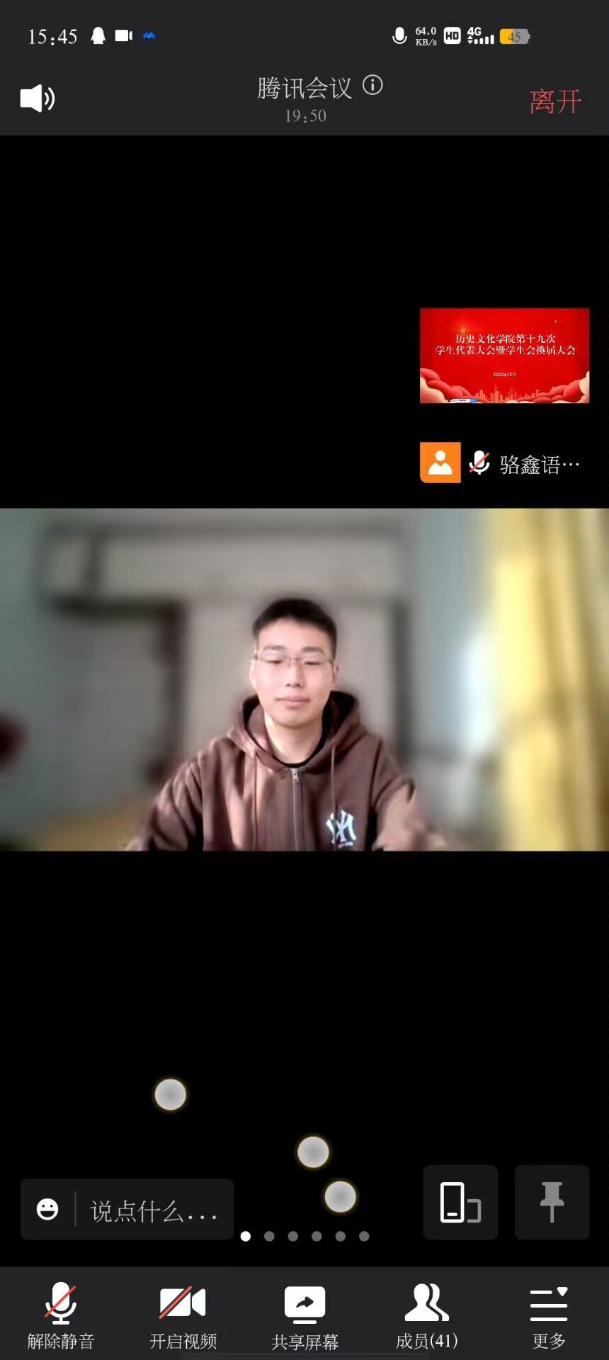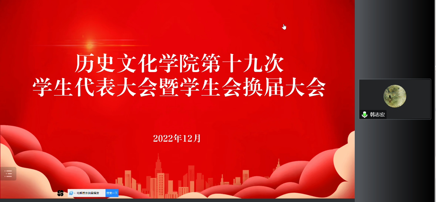 12月14日下午,beat365官网于腾讯会议召开第十九次学生代表大会暨学生会换届大会,学院党委副书记韩志宏,团委老师付亚男、吴慧娟、邓皓,学生会候选人员和学生代表共同参会。
