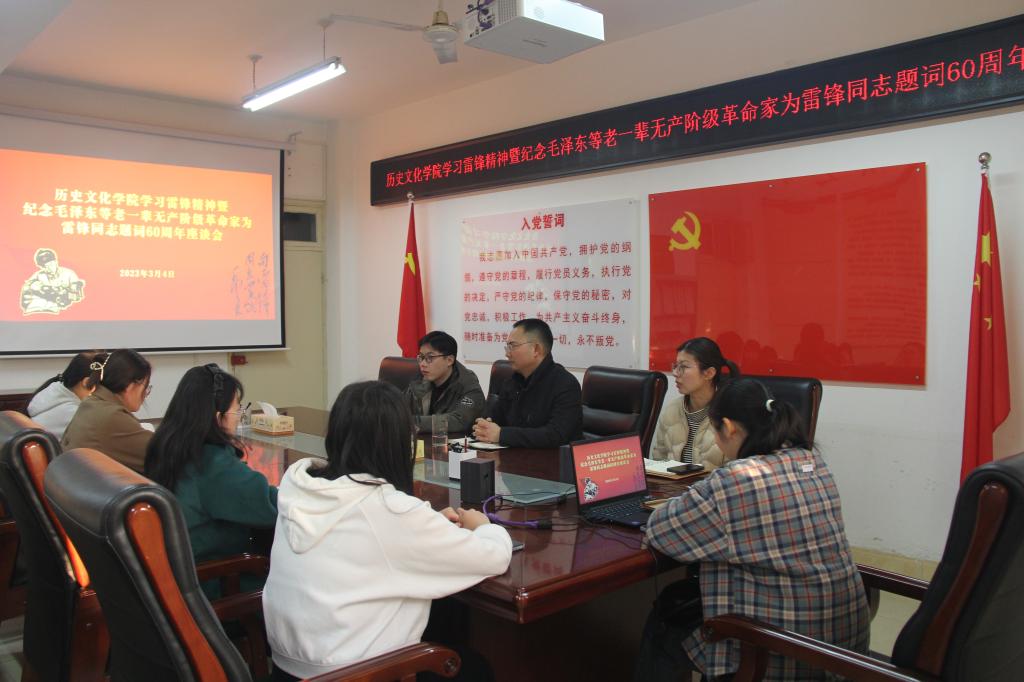 3月4日下午,beat365英国官方网站于人文楼805会议室召开学习雷锋精神暨纪念毛泽东等老一辈无产阶级革命家为雷锋同志题词60周年座谈会,学院党委副书记韩志宏、分团委副书记付亚男、辅导员邓皓及学生代表参会。