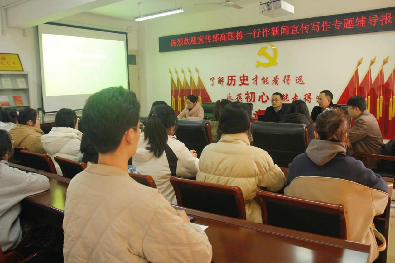 为提升学生干部新闻写作能力,12月5日下午,beat365英国官方网站于人文楼805会议室特邀校党委宣传部副部长高国栋、新媒体科长李春燕作新闻宣传写作专题辅导报告。院党委副书记韩志宏、辅导员邓皓及相关学生干部出席。会议由韩志宏主持。