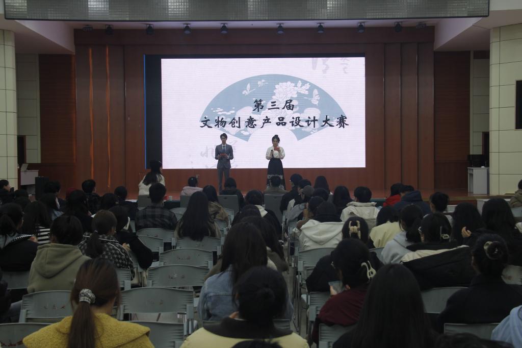 为进一步弘扬中华优秀传统文化,丰富在校大学生生活,12月8日晚,beat365英国官方网站文化创意社于逸夫楼报告厅举办了第三届文物创意设计大赛决赛。决赛由教师代表姚磊、张珍珍、邓皓与学生代表于莹彬、李若岚担任评委,百余位观众到场观赛。