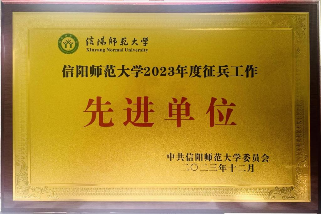 beat365官网荣获“2023年度征兵工作先进单位”荣誉称号,学院党委副书记韩志宏、武装干事付亚男被授予2023年度征兵工作先进个人