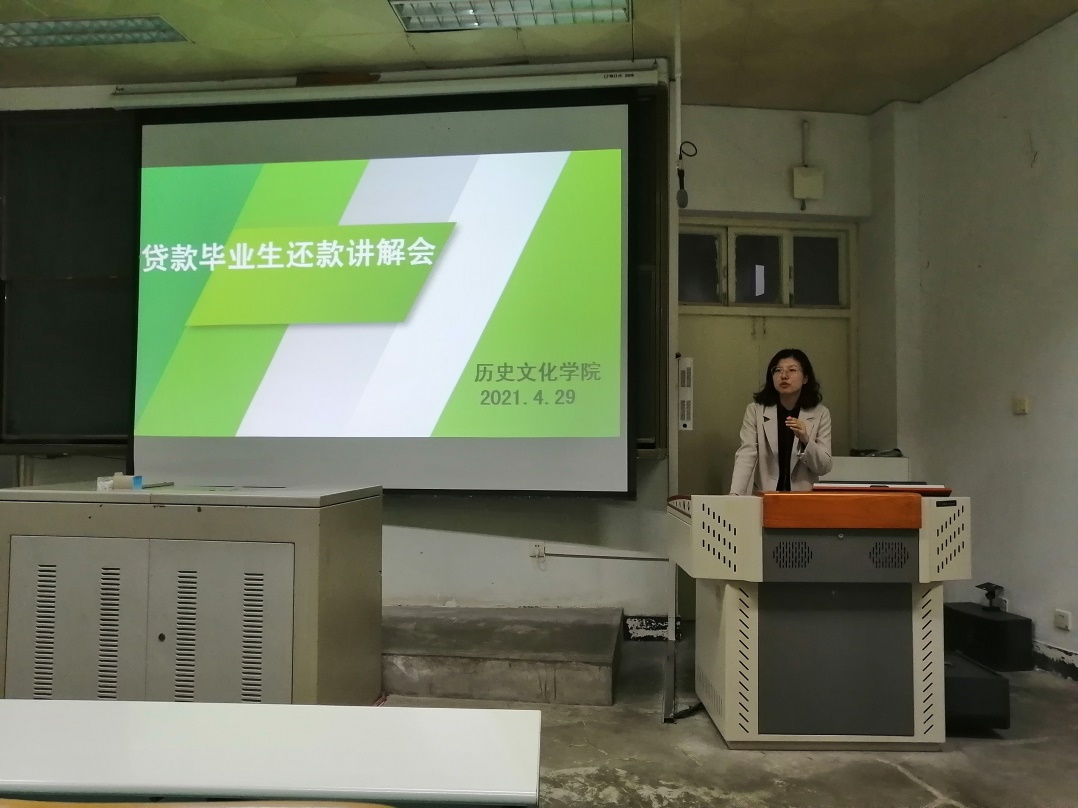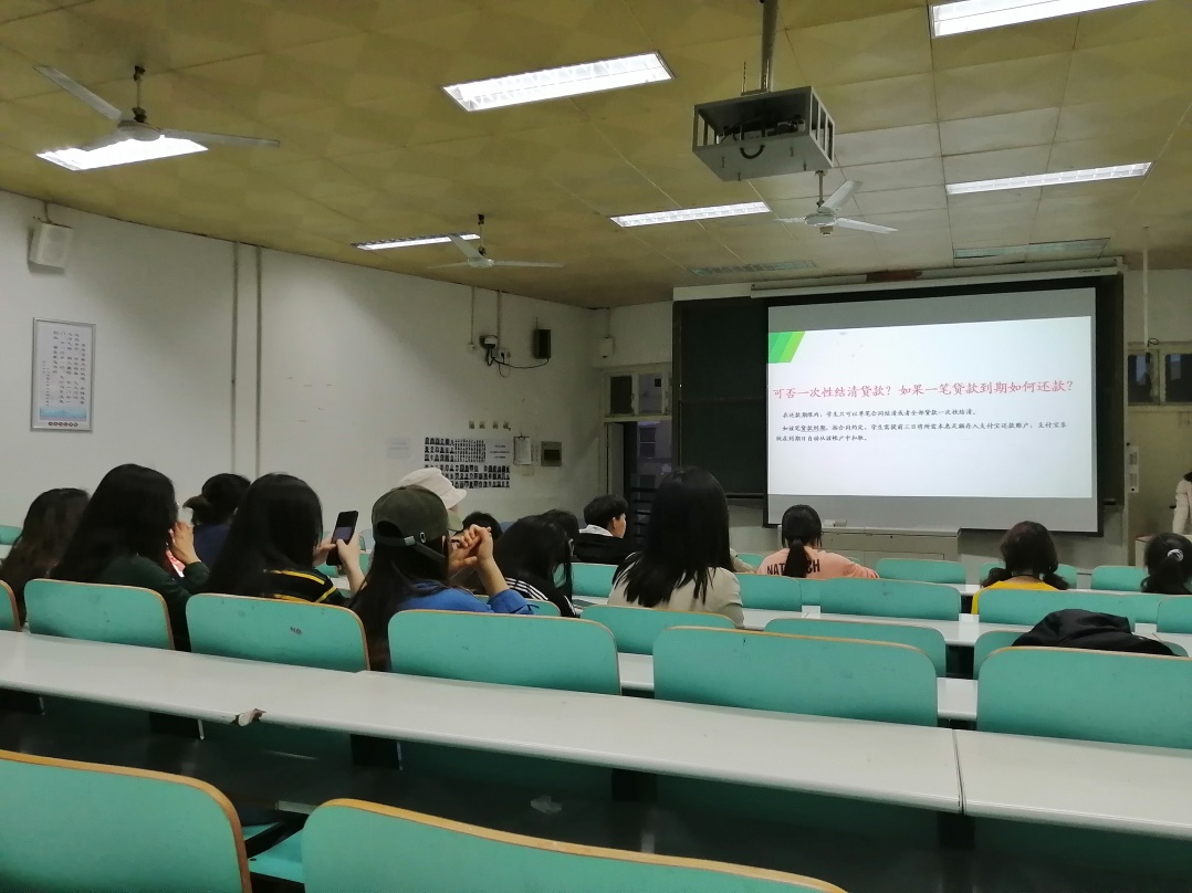 4月29日晚,beat365官网于人文楼609教室召开毕业生助学贷款还款讲解及诚信教育会,学院资助专员付亚男主持本次会议。
