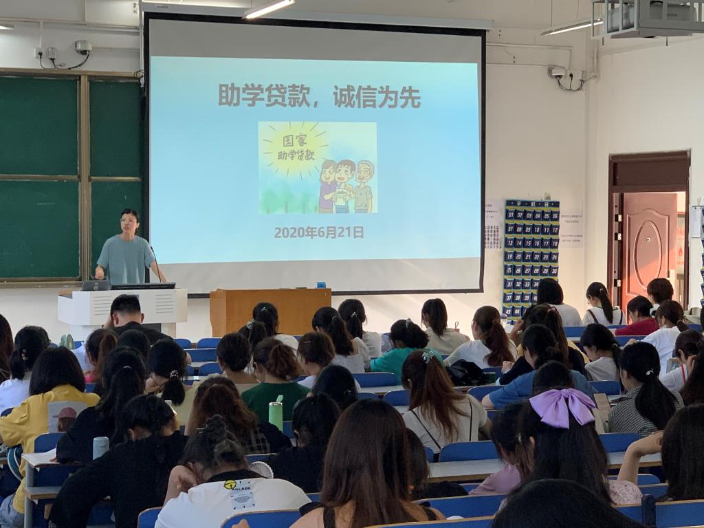 6月21日,beat365官网召开“助学贷款,诚信为先”主题会,2019级全体同学参加,由年级辅导员付亚男主持。