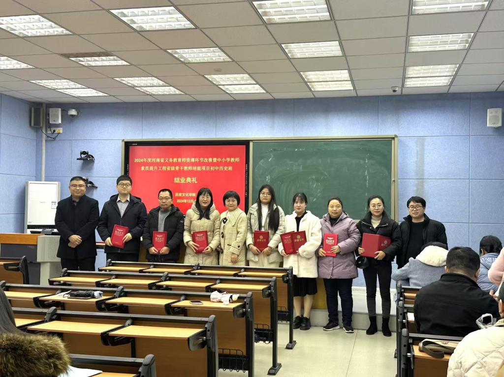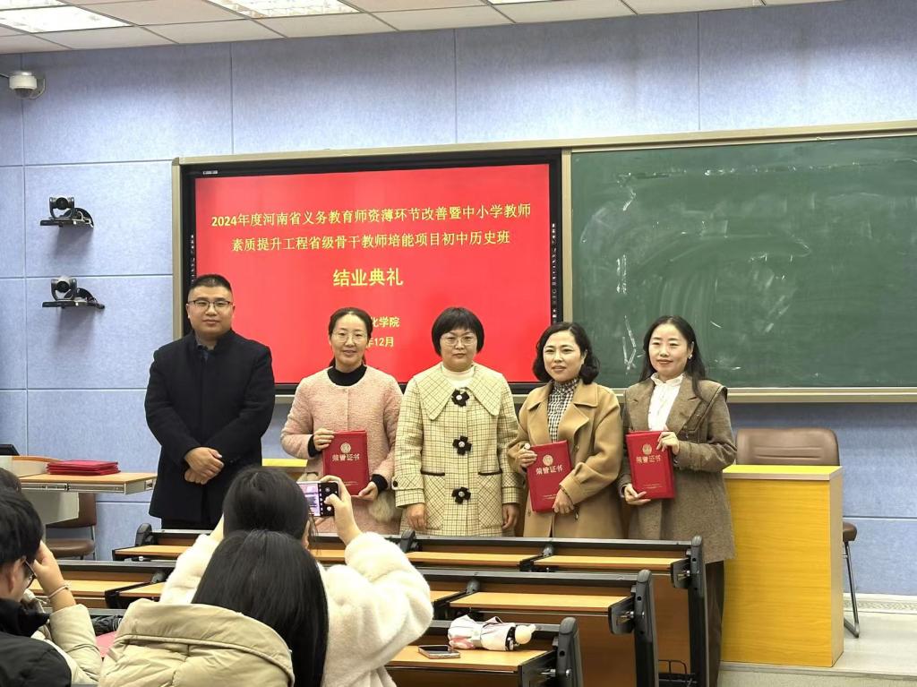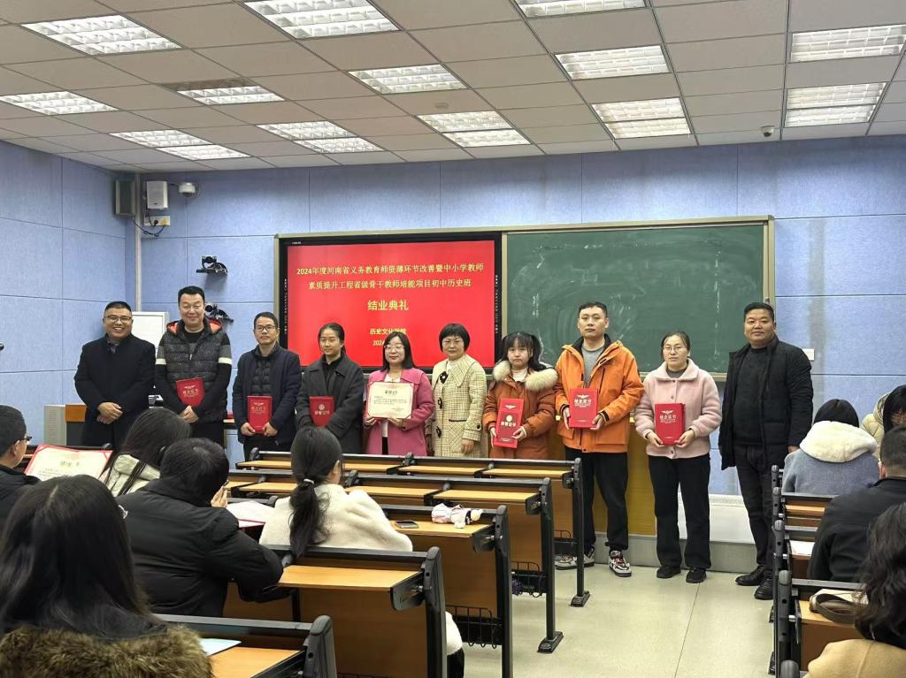 12月4日上午,beat365官网承办的2024年度河南省义务教育师资薄环节改善暨中小学教师素质提升工程省级骨干教师培能项目初中历史班结业仪式在人文楼706教室举行。副院长孙炜与来自全省各地市的近50名初中历史骨干教师参加。仪式由历史系主任张乐锋主持。