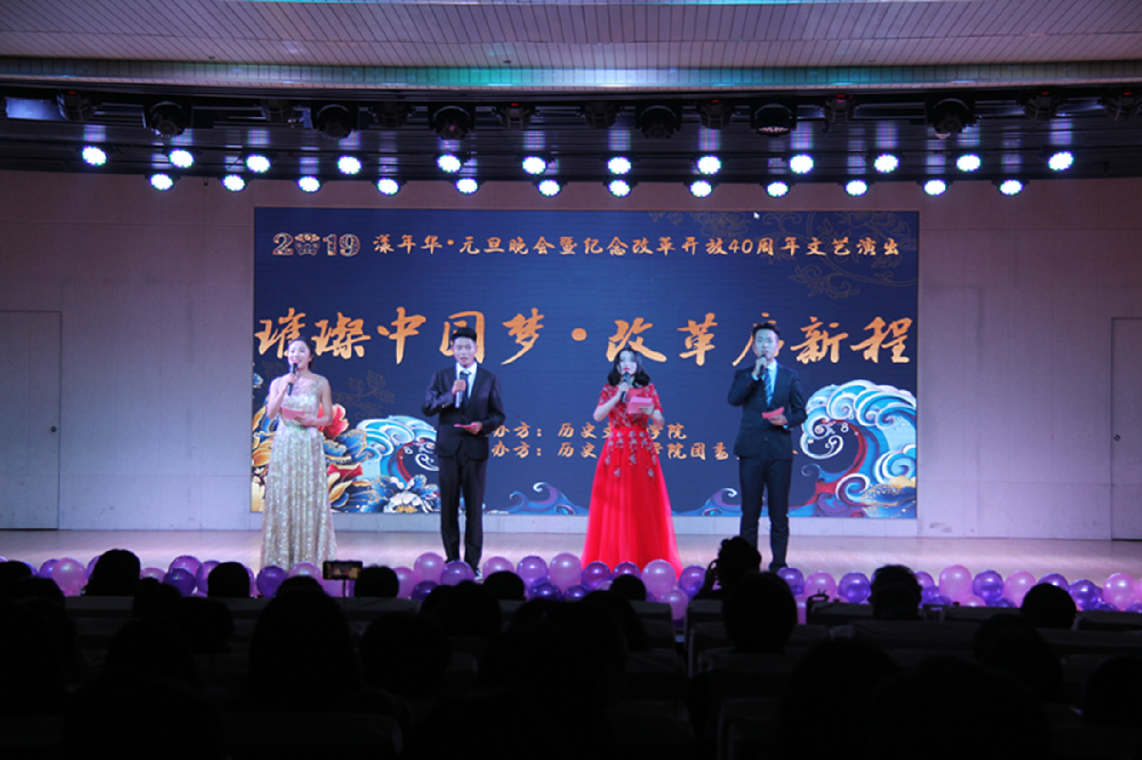 12月26日晚,beat365官网“璀璨中国梦,改革启新程”2019年元旦晚会暨纪念改革开放四十周年文艺演出在校理科楼报告厅隆重举行。beat365官网院长尹全海,副院长田青刚、叶宗宝、余纪珍,副书记刘喜元和beat365英国官方网站全体在校教师及四百余名学生共同观看了本次晚会。