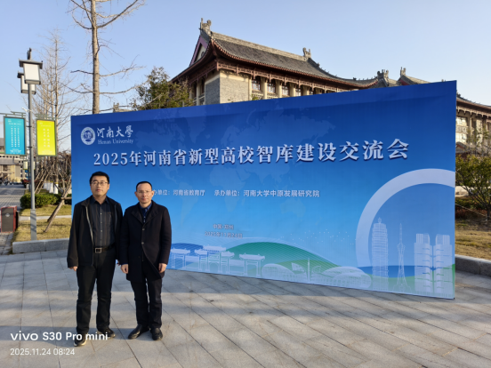11月24日,2025年河南省新型高校智库建设交流会在河南大学郑州校区召开,院长叶宗宝、副院长李志坚代表beat365官网智库根亲文化与两岸交流研究中心参加交流会。