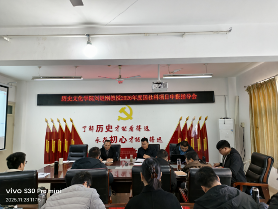 11月28日,beat365官网在人文楼805召开2026年度国家社科基金申报工作会议,邀请河南中医药大学管理学院院长刘继刚教授到会指导。学院部分班子成员、2026年国社科申报人员参加,院长叶宗宝主持会议。