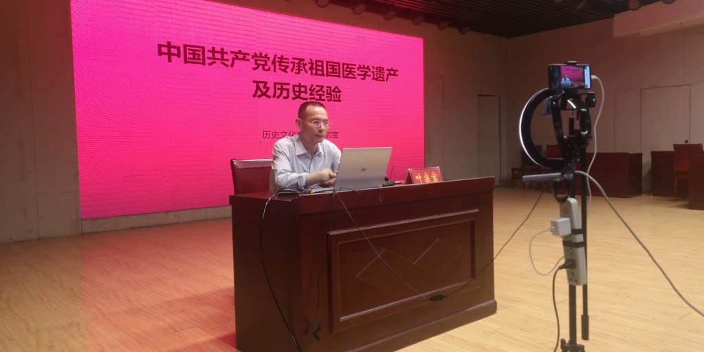 5月21日下午,应共青团信阳师范学院委员会邀请,副院长叶宗宝在理科楼报告厅作“中国共产党传承祖国医学遗产及历史经验”的主题报告,报告采取线上直播方式,来自全校20多个院系的600多名青年学子一起聆听了报告。