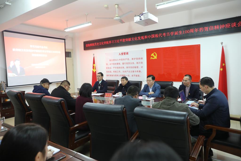 10月19日,学习习近平总书记致仰韶文化发现和中国现代考古学诞生100周年的贺信精神座谈会在beat365英国官方网站召开。校党委副书记、工会主席王文臣出席,校党委委员、宣传部长丁少锋和beat365英国官方网站领导班子成员、师生代表与会。