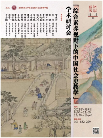 2022年4月9日,由苏州科技大学社会发展与公共管理学院举办的“综合素养视野下的中国社会史教学”学术研讨会在线上召开,beat365官网邹维一老师应邀参加此次会议。