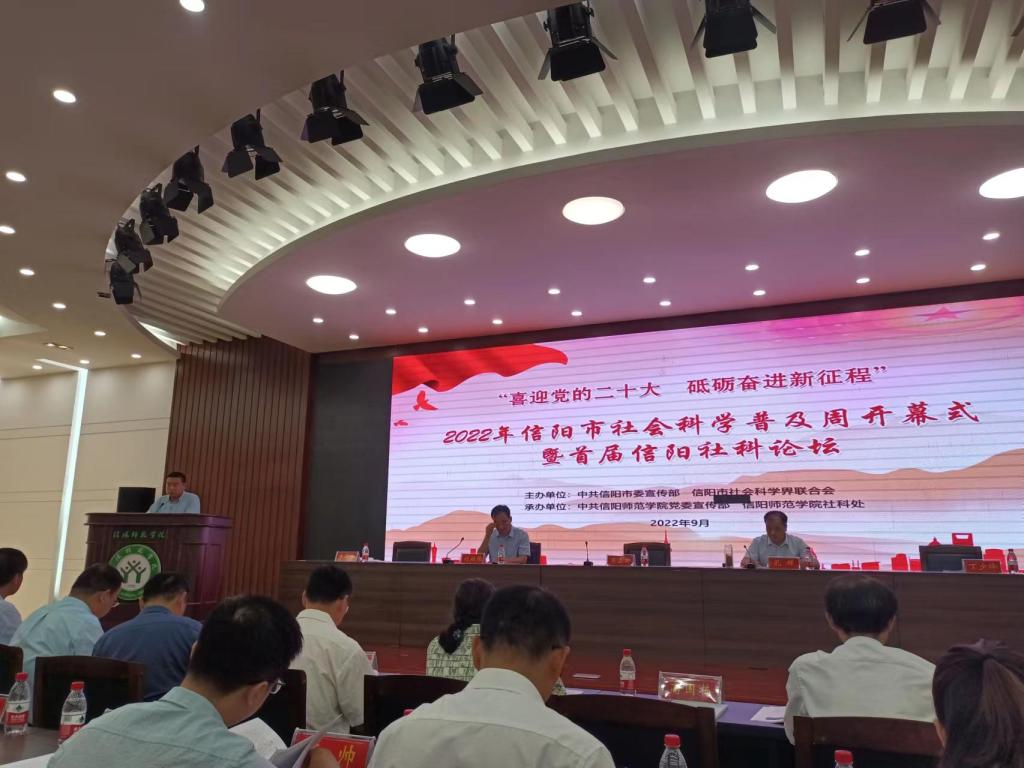 9月14日上午,2022年信阳市社会科学普及周开幕式暨首届信阳社科论坛在beat365官网艺术楼报告厅举行,beat365官网孙启正老师在信阳市首届社科论坛进行了发言。