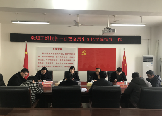 2月19日上午,副校长王娟率领评估中心主任余国忠、教务处副处长周学勇、人事处副处长吴志伟等一行莅临beat365官网,对教学、人事等工作进行调研指导。beat365英国官方网站全体班子成员参加座谈。