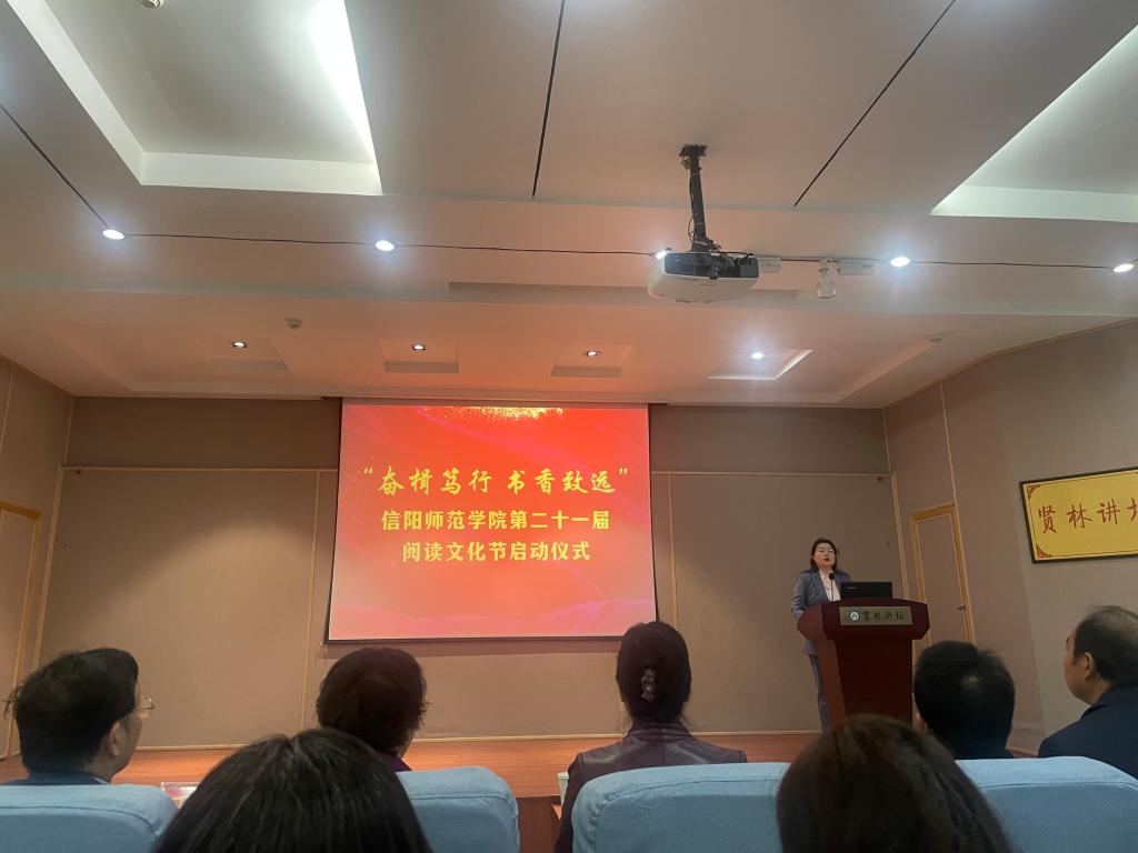 4月24日上午,beat365官网举办信阳师范学院第二十一届阅读文化节启动仪式,副校长王金云,学校有关部门和各学院负责人以及图书馆负责同志与部分师生代表参会。beat365官网被评为信阳师范学院2022年书香校园建设十佳单位。