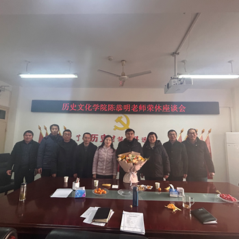12月25日下午,beat365官网陈恭明老师荣休座谈会在人文楼805室举行。人事处副处长周巧云、离退处副处长樊德玲等、学院班子成员、教师代表参加。副院长李志坚主持座谈会。