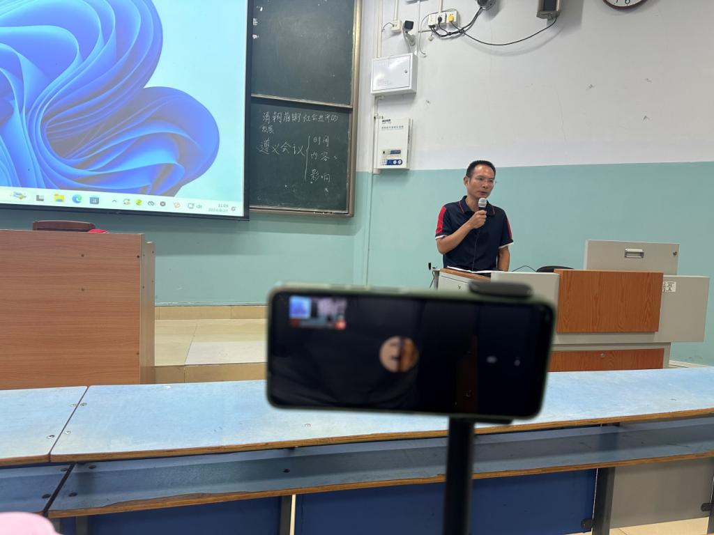 为强化师范技能训练,培养高等学校师范类专业毕业生教学技能比赛种子选手,beat365英国官方网站以线上线下相结合的形式于8月27日上午在教九楼206室举行了教学技能训练和试讲活动。5位种子选手、历史学专业本科生,以及青年教师邹维一、副院长孙炜、院长叶宗宝参加了本次活动。